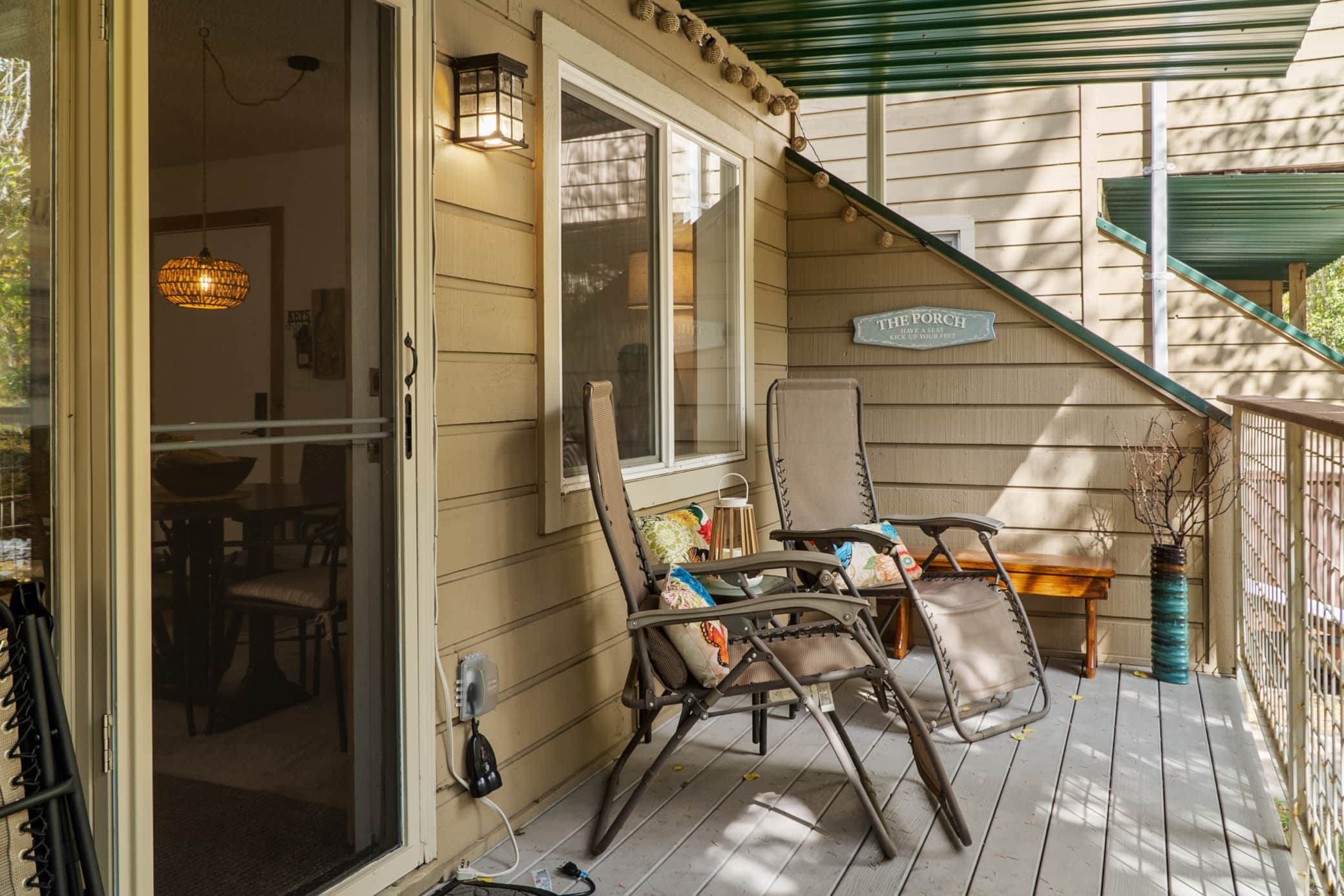 Our cozy 870 sqft ground floor condo sits in a private setting but close to everything! The complex is nestled along the bank of The Ten Mile Creek. A short 10 min walk to downtown Frisco for shopping, dining, and activities and just steps to the Woodbridge Inn bus stop with a direct route to Copper Mountain.