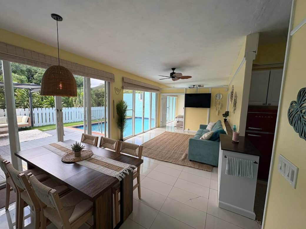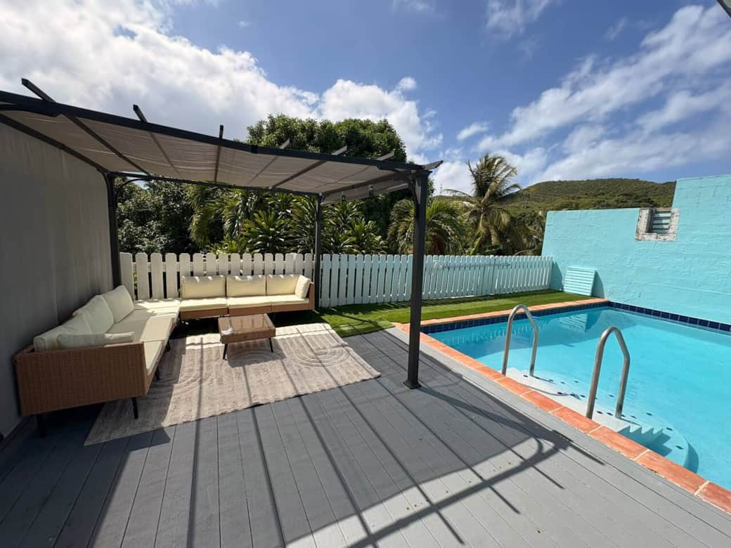 Enjoy the island life at this tranquil villa with private pool...only steps from the Sapphire and Lindquist beaches! Cooler, snorkeling gear, and beach chairs INCLUDED! The pool has been fully updated as well as the deck area, which includes brand new furniture. A new gas grill has also been added for your outdoor grilling pleasure. Stream all your favorites with our strong Wi-Fi. Upscale restaurant, Pangea, is just steps away. Free parking and industrial generator for property. HIGHLIGHTS +Completely private pool +Easy access to Sapphire Beach +Free Parking and WiFi +Large living area, sleeps 4 guests +Poolside lounge chairs +Pool cleaning 2-3x per week +Beach chairs, cooler available +Panel folding privacy screen +2 Smart Televisions +Ensuite Washer/Dryer, detergent +Backup Generator Onsite +Pangea Restaurant Onsite +Pack and Play +Grocery delivery service, please ask! You have access to the entire condo which has its own pool. We are available by phone whenever needed.